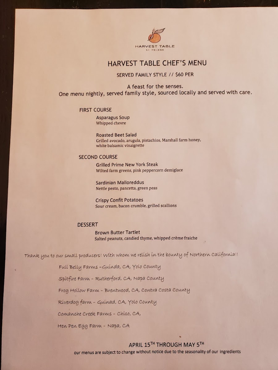 Welcome to Harvest Table, a culinary gem nestled in St. Helena, CA. This restaurant delivers an exceptional dining experience, highlighted by its carefully curated Prix Fix menu. Guests rave about the diverse three-course offerings, which feature delectable choices like Radish Salad, ginger salmon, and Szechuan peppercorn beef. The atmosphere is warm and inviting, allowing for both intimate meals and lively gatherings.